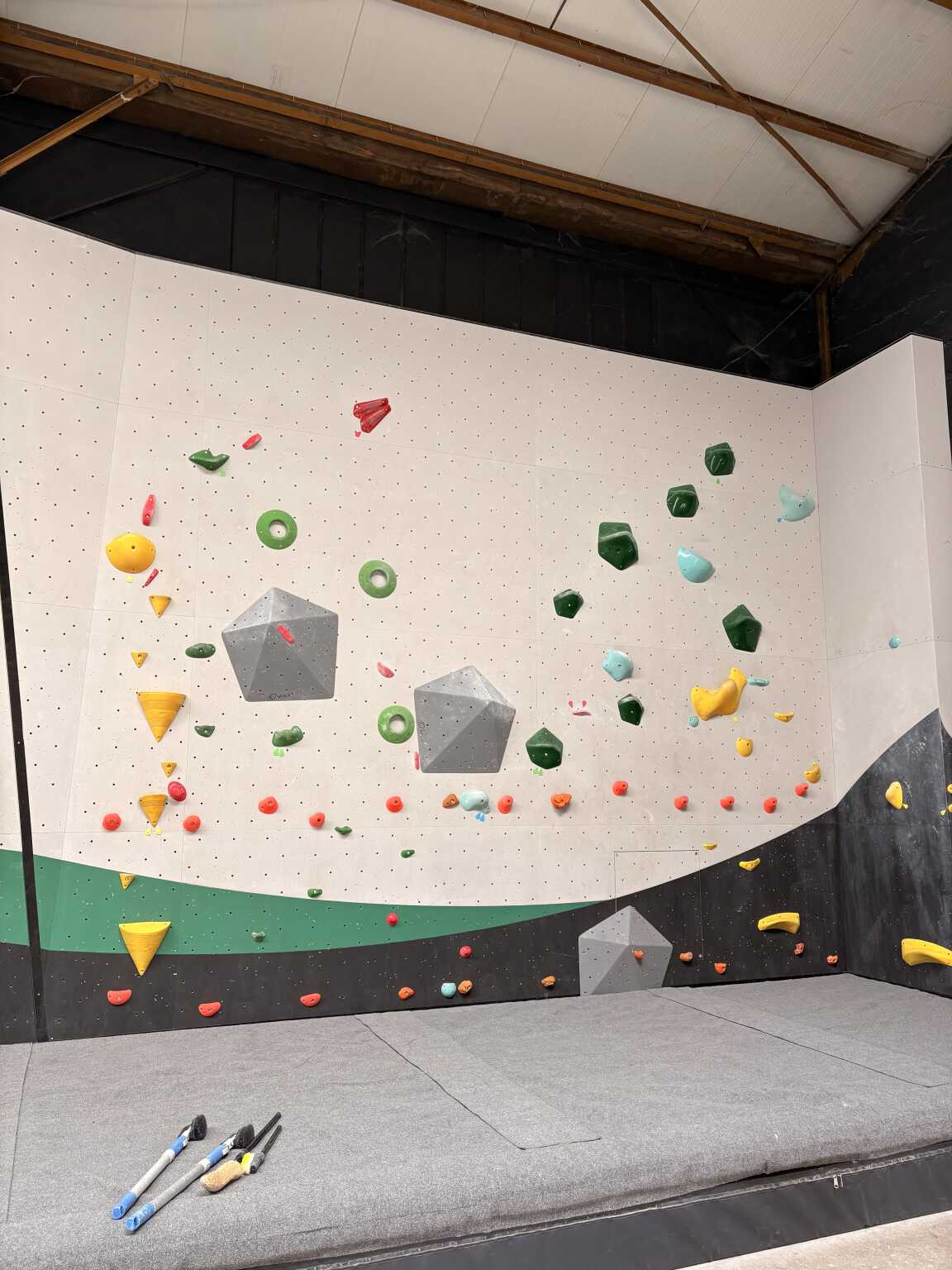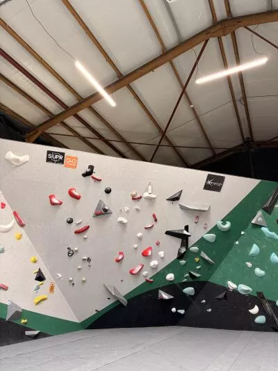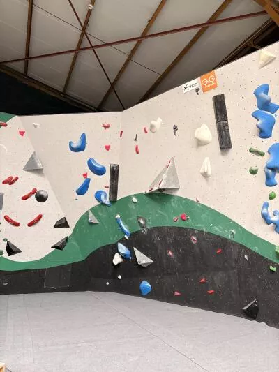 Le léger dévers est une faible inclinaison, du coup vous pouvez grimper sur des prises un peu plus petites...
